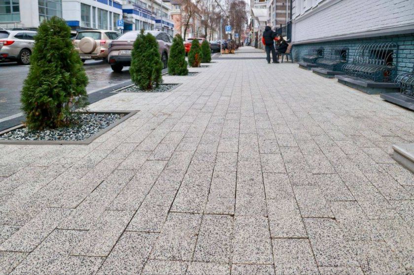 Недавно были закончены аналогичные работы на соседней улице — Академика Блохиной. Контракт предусматривал устранение дефектов покрытия и благоустройство территории.