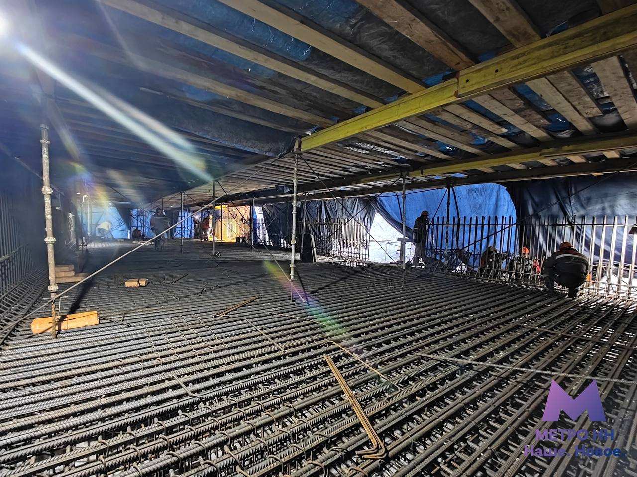 Согласно информации, новый этап работ уже прошел государственную экспертизу. Представители подрядной организации трудятся одновременно на поверхности и на глубине около 16 метров. Сейчас специалисты занимаются заливкой монолитных конструкций. Именно они формируют и укрепляют каркас будущей станции.