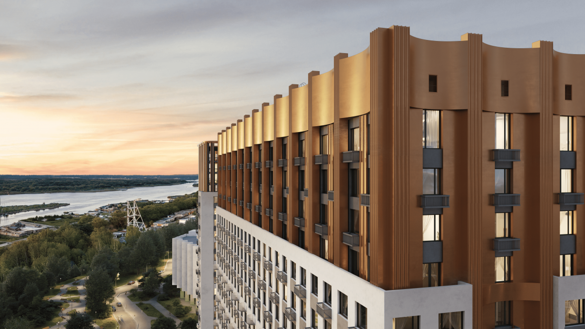 Квартиры евростандарта с кухней-гостиной, с видом на Волгу, на панораму города или в сторону пакгаузов Стрелки. Можно выбрать квартиру с террасами, с окнами на обе стороны или с круговым остеклением в эркерной части дома.