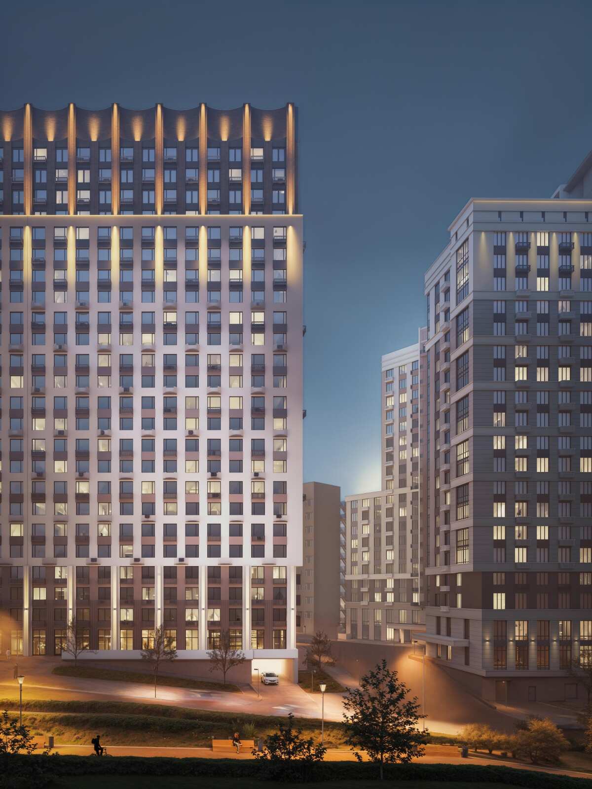 ЖК «Дом На Набережной» создают два архитектурных бюро, главная задача которых — вписать дом в городское пространство. Вторая задача — социальное программирование территории вокруг комплекса — создание концептуальных точек притяжения для жителей всего микрорайона и насыщение необходимой для жизни инфраструктурой.