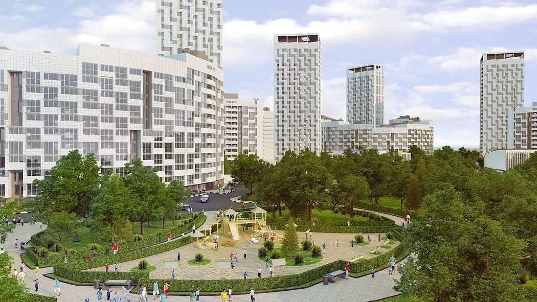 — благоустроенную, просторную территорию вокруг домов;