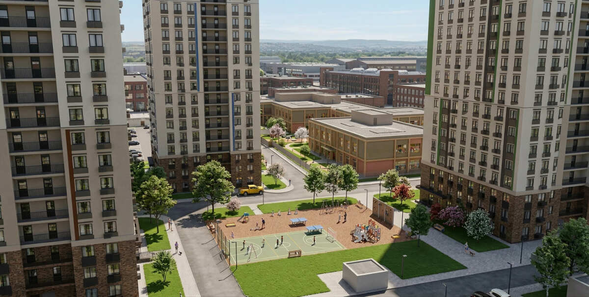 На территории жилого комплекса будут возведены шесть многоквартирных домов высотой 24 этажа (с техническим этажом) на 225 квартир и 5 нежилых помещений общественного назначения, с современными детскими и спортивными площадками, площадками для отдыха, наземными парковочными местами, с собственной инфраструктурой — детским садом на 135 мест. По всей территории комплекса будет выполнено благоустройство и озеленение. На первых этажах жилых домов запроектированы коммерческие помещения для размещения организаций обеспечивающих жизнедеятельность и комфортное проживание жителей: продовольственные магазины, аптеки, пункты доставки товаров, салоны красоты, центры творчества и развития и другие. В планах развития территории предусматривается строительство поликлиники, школы на 550 мест и спорткомплекса.