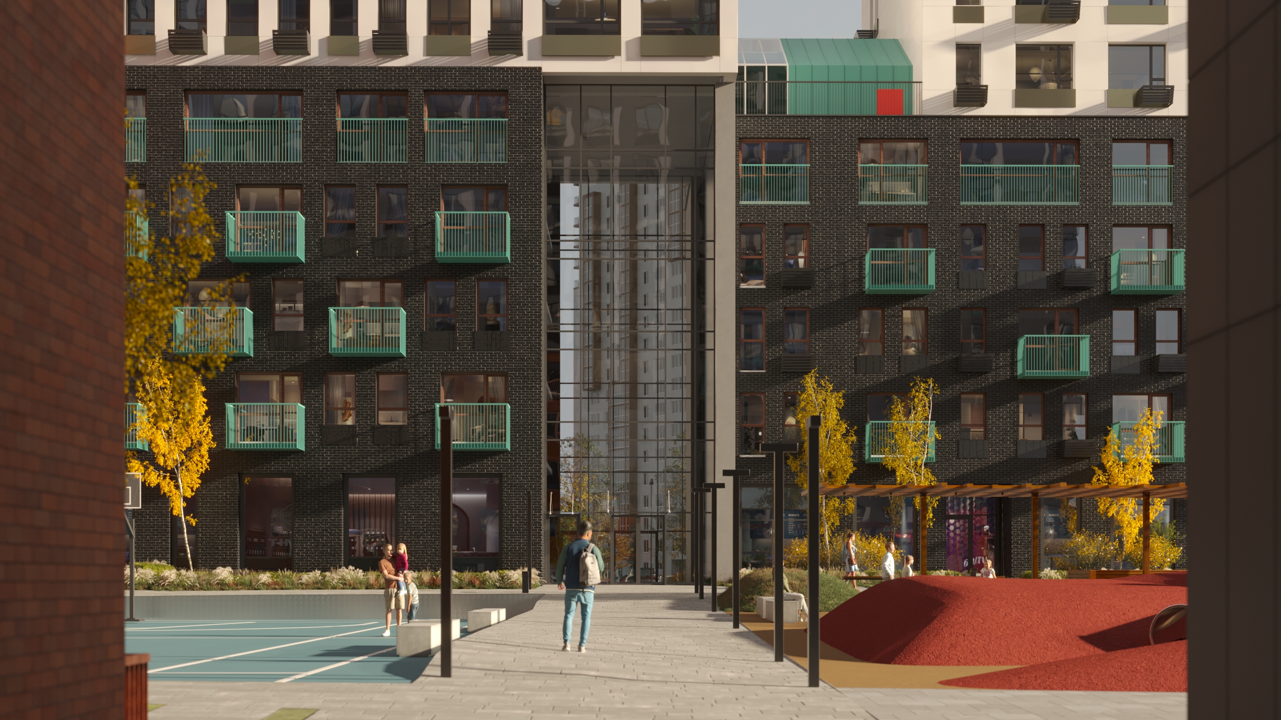 Инфраструктура будет включать детский сад на 200 мест, который передадут городу, а также — в перспективе — школу на 1000 мест на соседнем участке. Благоустройство территории охватывает устройство детских и спортивных площадок, зон отдыха, тротуаров, проездов и остановки общественного транспорта.