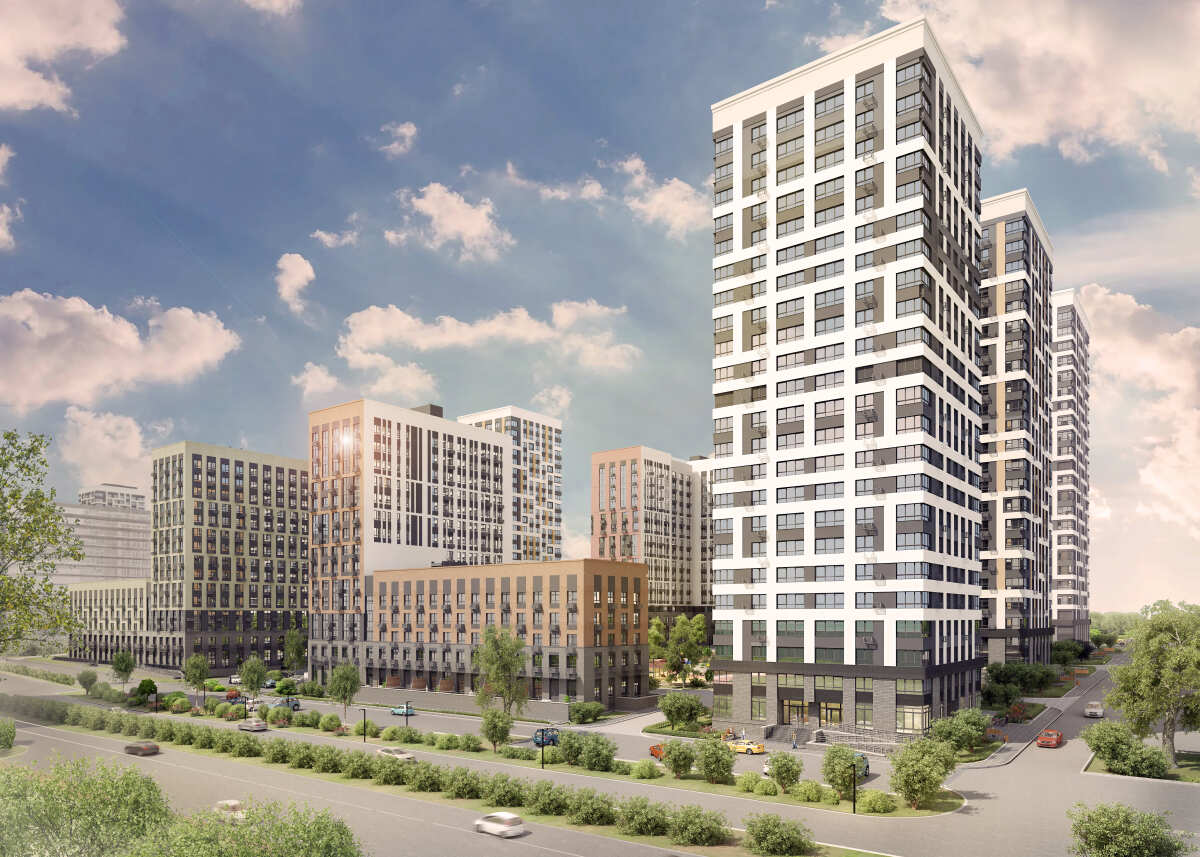 Архитектура микрорайона сочетает элегантность и функциональность: здания переменной этажности от 5 до 24 этажей создают комфортный микроклимат, защищая внутренние дворы от шума и ветра. Низкие 5-этажные дома с южной стороны наполняют жилые помещения естественным светом, создавая теплую и уютную атмосферу.
